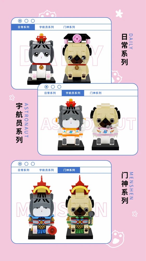 吾皇萬睡×古迪積木此次共上線“經(jīng)典系列、航天系列、門神系列”的六款聯(lián)名積木。為最大限度地還原#吾皇巴扎黑#的可愛形象,系列積木特別采用了具有弧度顆粒方塊進行設(shè)計制作,為積木的整體造型增添了視覺上的Q萌感,還原了吾皇傲嬌、巴扎黑呆萌的小性格。