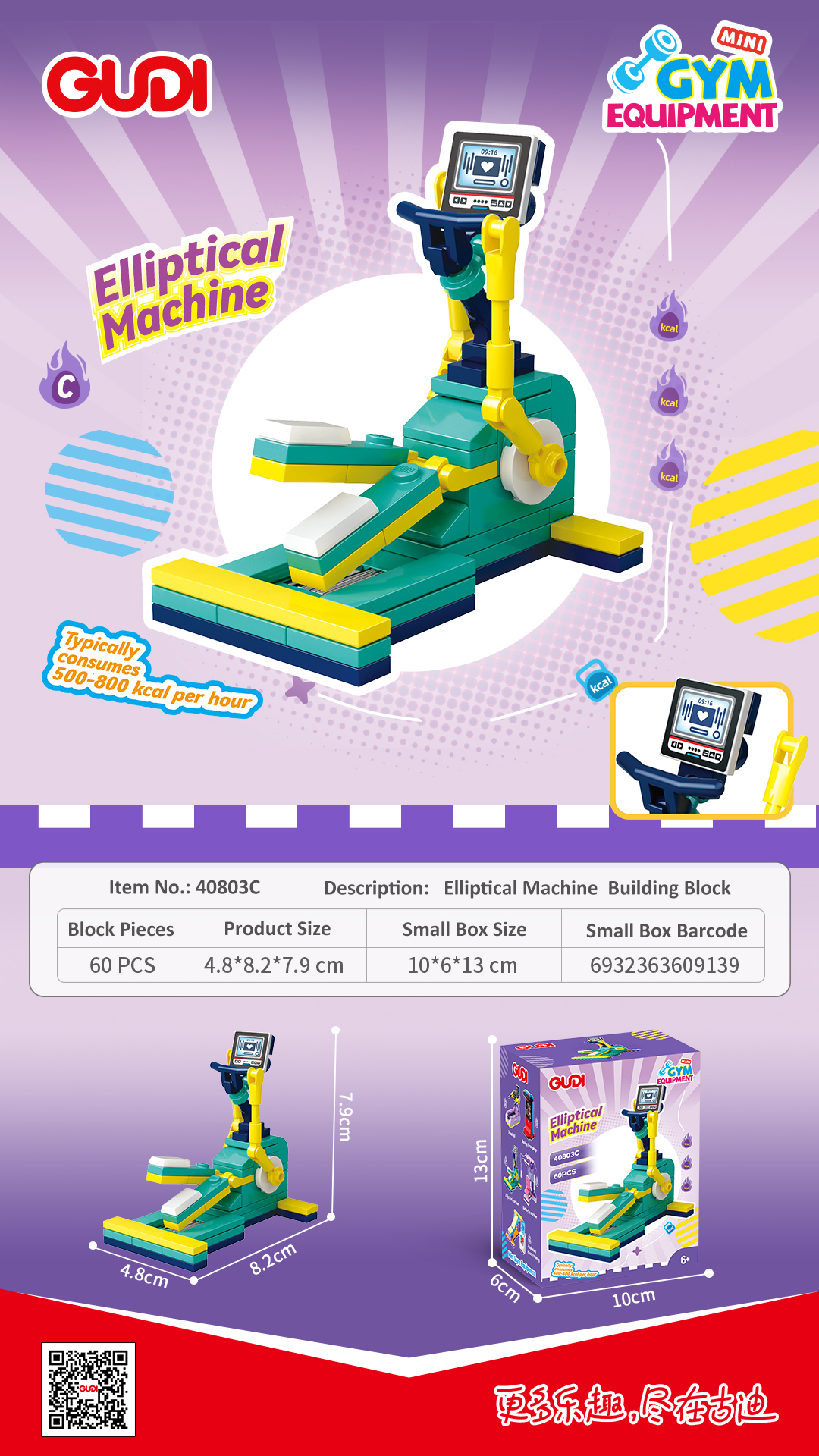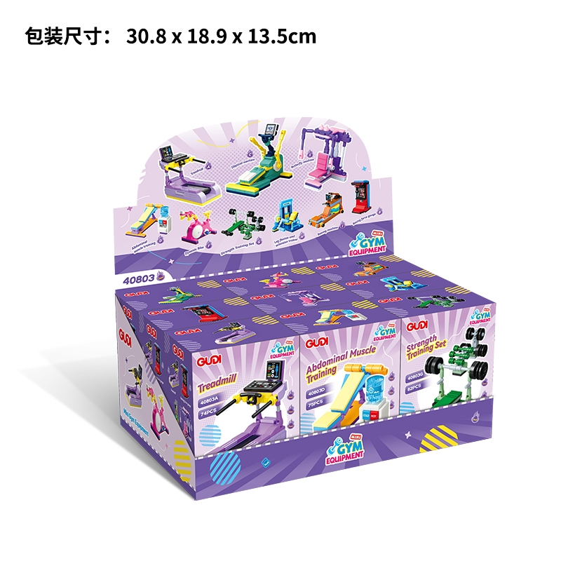 - Description:40803A-Treadmill(74pcs) 40803B-Boxing Force Gauge(64pcs) 40803C-Elliptical Machine(60pcs) 40803D-Abdominal Muscle Training(75pcs) 40803E-Butterfly Machine(89pcs) 40803F-Dynamic Bike(75pcs) 40803G-Strength Training Set(82pcs) 40803H-Leg Flexion & Extension Trainer(71pcs) 40803I-Rowing Machine(68pcs)